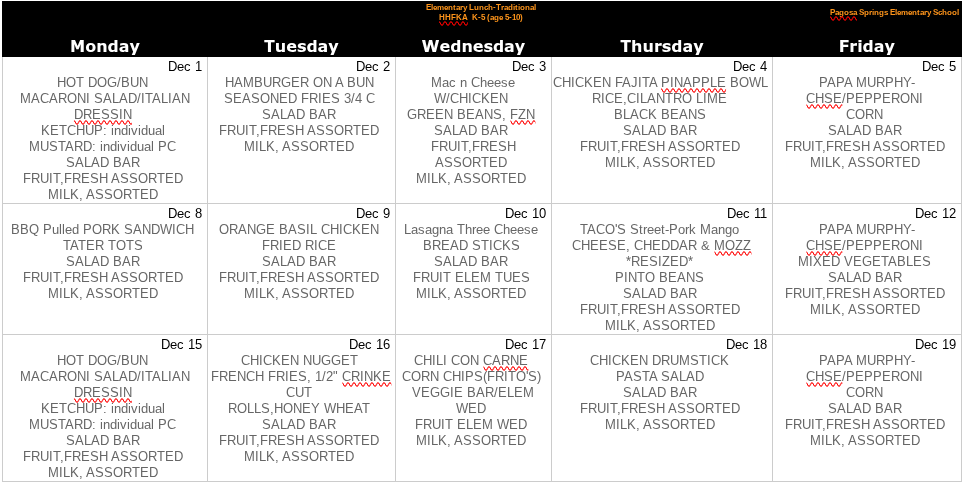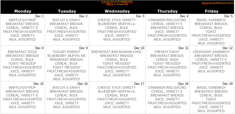 December Menu's